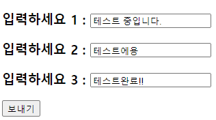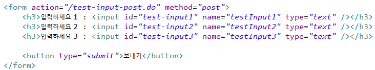 - form ํ๊ทธ์ action ๊ฒฝ๋ก(test-input-post )๋ก ์ ํธ ๋ณด๋ด๊ธฐ