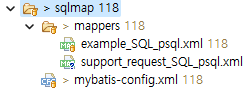 mappers ์ค์ ์ sqlmap ๋ฐ๋ก ์๋ ํ์ ํ์ผ์ธ mybatis-config ์ mappers ํ์ ํ์ผ example_SQL_psql ๋ฅผ ๋ณต์ฌํด์ ์ค์ ํ๋ค.