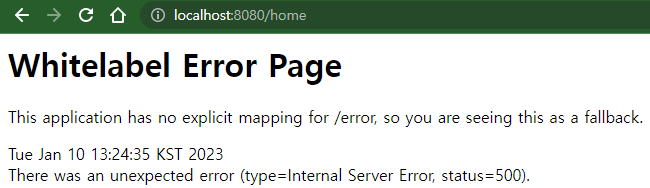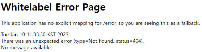 ๊ธฐ๋ณธ๊ฐ์ผ๋ก ํ๋ฉด์ ๋ํ๋ด์ค ํ๋ฉด, ์ฆ html(jsp ๋ฑ) ์ด ์์ด์ ์๋ฌ ๋ฉ์ธ์ง๋ก ๋์ฒด๋์ด ๋์ค๋ ๊ฒ์ด๋ผ๊ณ ํ๋ค.