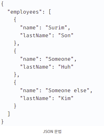 -- JSON ννμμ μ¬λκ³Ό κΈ°κ³ λͺ¨λ μ΄ν΄νκΈ° μ¬μ°λ©° μ©λμ΄ μμμ, μ΅κ·Όμλ JSONμ΄ XMLμ λ체ν΄μ λ°μ΄ν° μ μ‘ λ±μ λ§μ΄ μ¬μ©