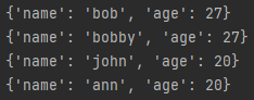 {'name': 'ben', 'age': 27}]
