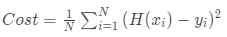 - ์์ค ํจ์ $Cost = {{1\over N}\sum{(H(x_1, x_2, x_3, ..., x_n) - y) ^ 2}}$