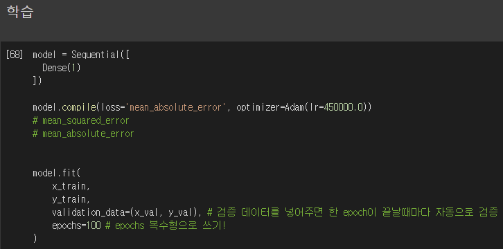 3-4 : loss='mean_absolute_error' optimizer=Adam(lr=400000.0)