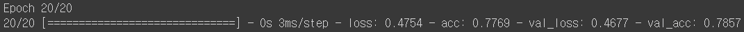 epochs=20 # epochs ๋ณต์ํ์ผ๋ก ์ฐ๊ธฐ!
