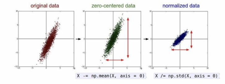 # ์ผ๋จ ๋ฐ์ดํฐ์ ํ๊ท ์ 0์ผ๋ก ๋ง๋ค์ด์ฃผ๋ฉด ๋ฐ์ดํฐ์ ์ค์ฌ์ด 0์ ๋ง์ถฐ์ง๊ฒ(Zero-centered) ๋ฉ๋๋ค. ๊ทธ๋ฆฌ๊ณ ํ์คํธ์ฐจ๋ฅผ 1๋ก ๋ง๋ค์ด ์ฃผ๋ฉด ๋ฐ์ดํฐ๊ฐ ์์๊ฒ ์ ๊ทํ(Normalized) ๋์ฃ . ์ด๋ ๊ฒ ํ์คํ๋ฅผ ์ํค๊ฒ ๋๋ฉด ์ผ๋ฐ์ ์ผ๋ก ํ์ต ์๋(์ต์ ์ ์๋ ด ์๋)๊ฐ ๋น ๋ฅด๊ณ , Local minima์ ๋น ์ง ๊ฐ๋ฅ์ฑ์ด ์ ์ต๋๋ค.