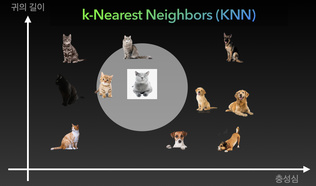 - ์๋ก ๋ํ๋ฌ์ ๋ ์ผ์ ๊ฑฐ๋ฆฌ์์ ๋ค๋ฅธ ๊ฐ์ฒด๋ค์ ๊ฐ์(k)๋ฅผ ๋ณด๊ณ ์์ ์ ์์น๋ฅผ ๊ฒฐ์ ํ๊ฒํ๋ ์๊ณ ๋ฆฌ์ฆ