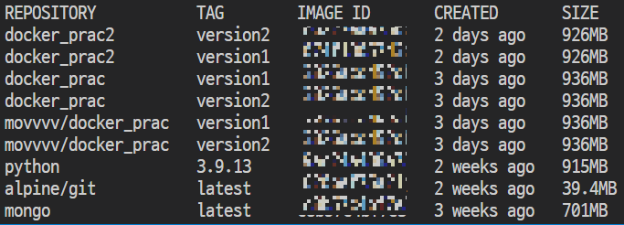 3. Docker image ๋ชฉ๋ก ํ์ธ