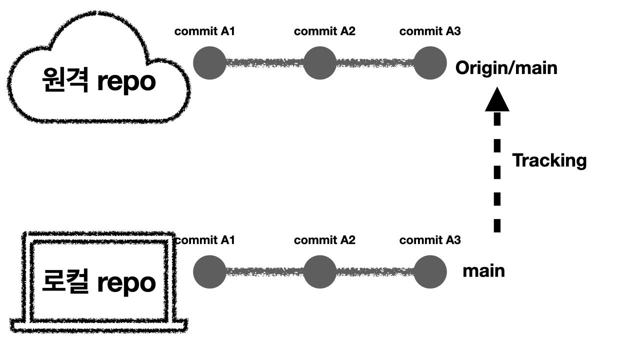 - ๋ก์ปฌ repo ์ Branch ์์ ์๊ฒฉ repo ์ Branch ๋ฅผ Tracking ์ผ๋ก ์ฐ๊ฒฐ