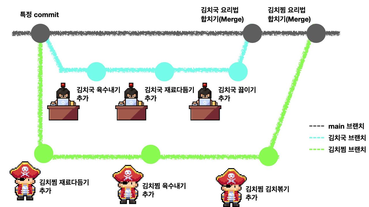 - κΈ°μ€μ΄ λλ λΈλμΉλ₯Ό μ νκ³ ν΄λΉ λΈλμΉμ λ΄μ©μ merge
